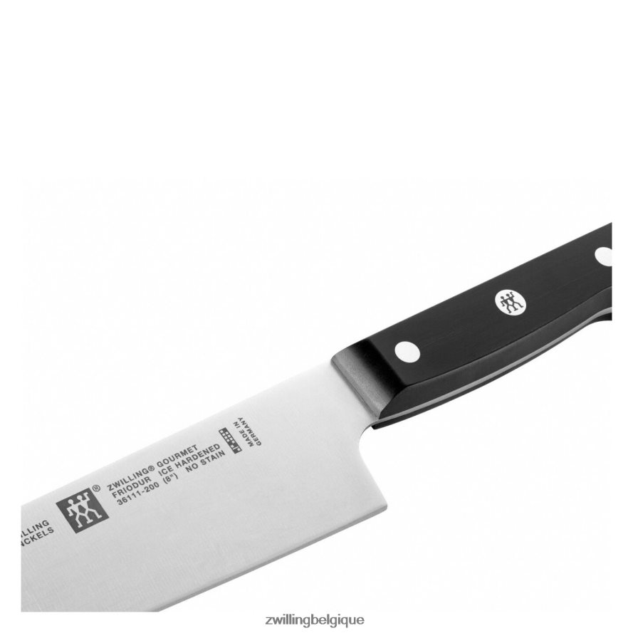le pionnier de la coutellerie haut de gamme zwilling j.a. Henckels fabrique des couteaux remarquables depuis 1731. respectée comme un innovateur dans l'industrie, l'entreprise reste fidèle à ses racines : un engagement fort envers la qualité et l'excellence. zwilling gourmet est le couteau incontournable des chefs amateurs désireux que leur couteau de tous les jours soit exceptionnel. la construction de la lame monobloc estampée avec précision est plus légère que les couteaux forgés, permettant une maniabilité maximale. Fièrement fabriqués en Allemagne, les couteaux sont fabriqués en acier de formule spéciale perfectionné depuis plus de 285 ans. Combinées à la technique de durcissement à la glace caractéristique de Zwilling, les lames sont plus dures, plus tranchantes, elles ne tachent pas et ne s'écaillent pas et conservent leur tranchant plus longtemps. La poignée ergonomique à triple rivetage assure une coupe sans fatigue. Découvrez le confort, la durabilité et le tranchant du Zwilling Gourmet.